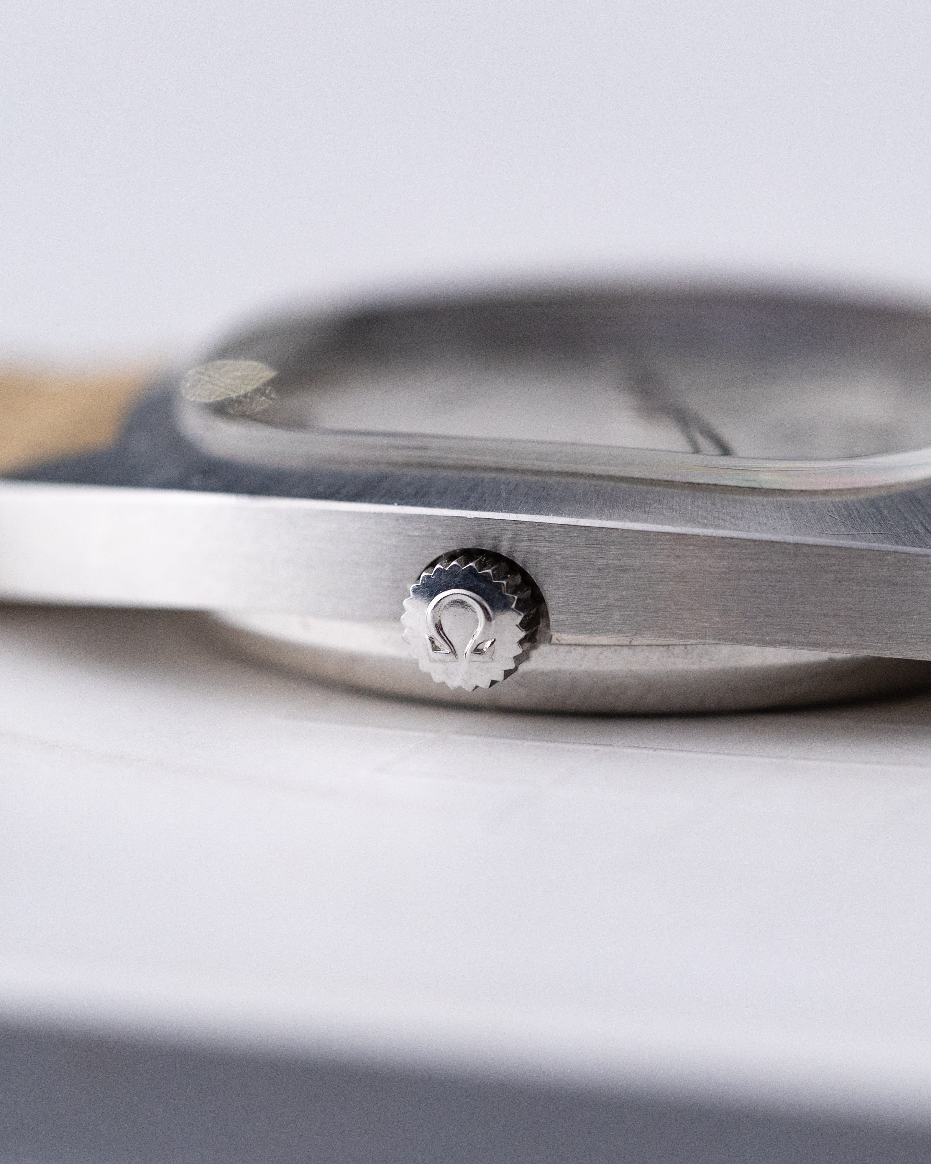 This vintage Omega De Ville is a beautiful and classic watch from 1970. It features a unique cushion-shaped case that gives it a stylish and retro look. The brushed finish on both the stainless steel case and the silver dial creates a soft, elegant light effect. It is a perfect size for a timeless watch, comfortable for daily wear yet full of character.