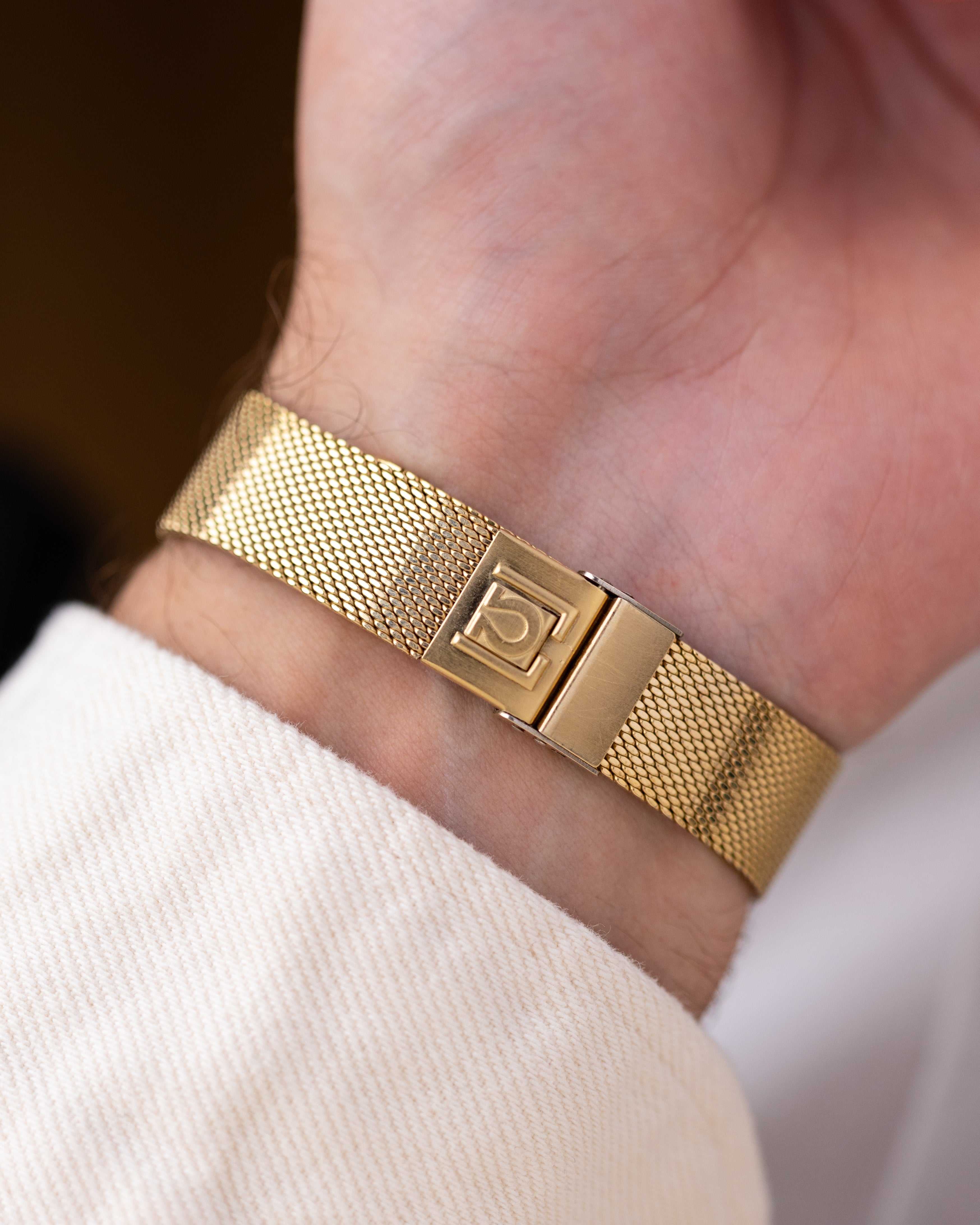 This 1978 Omega De Ville Quartz is a sleek and elegant example of late-‘70s Swiss design. With its 10k gold-filled case and integrated bracelet, this model reflects the clean lines and slim profiles that defined the De Ville range during the quartz era.