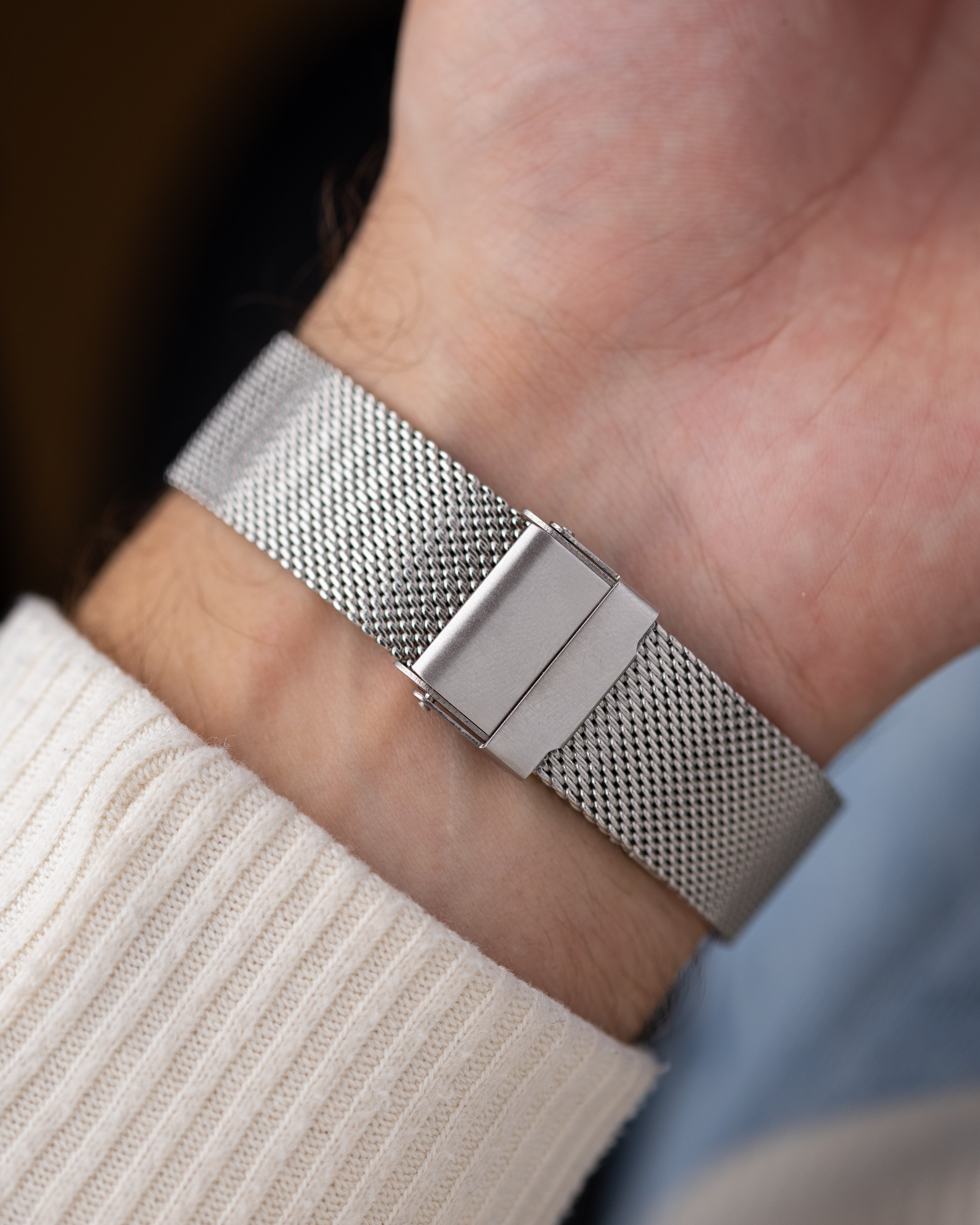 But the real showstopper is the rare “frosty” silver dial — a vertically brushed texture that catches light beautifully and adds a subtle layer of visual depth. The minimalist applied markers and slim black hands give the watch a refined, almost architectural aesthetic.
