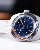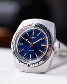 Vintage Vostok Amphibia Soviet Watch, Blue Dial, Barrel Shaped Case
