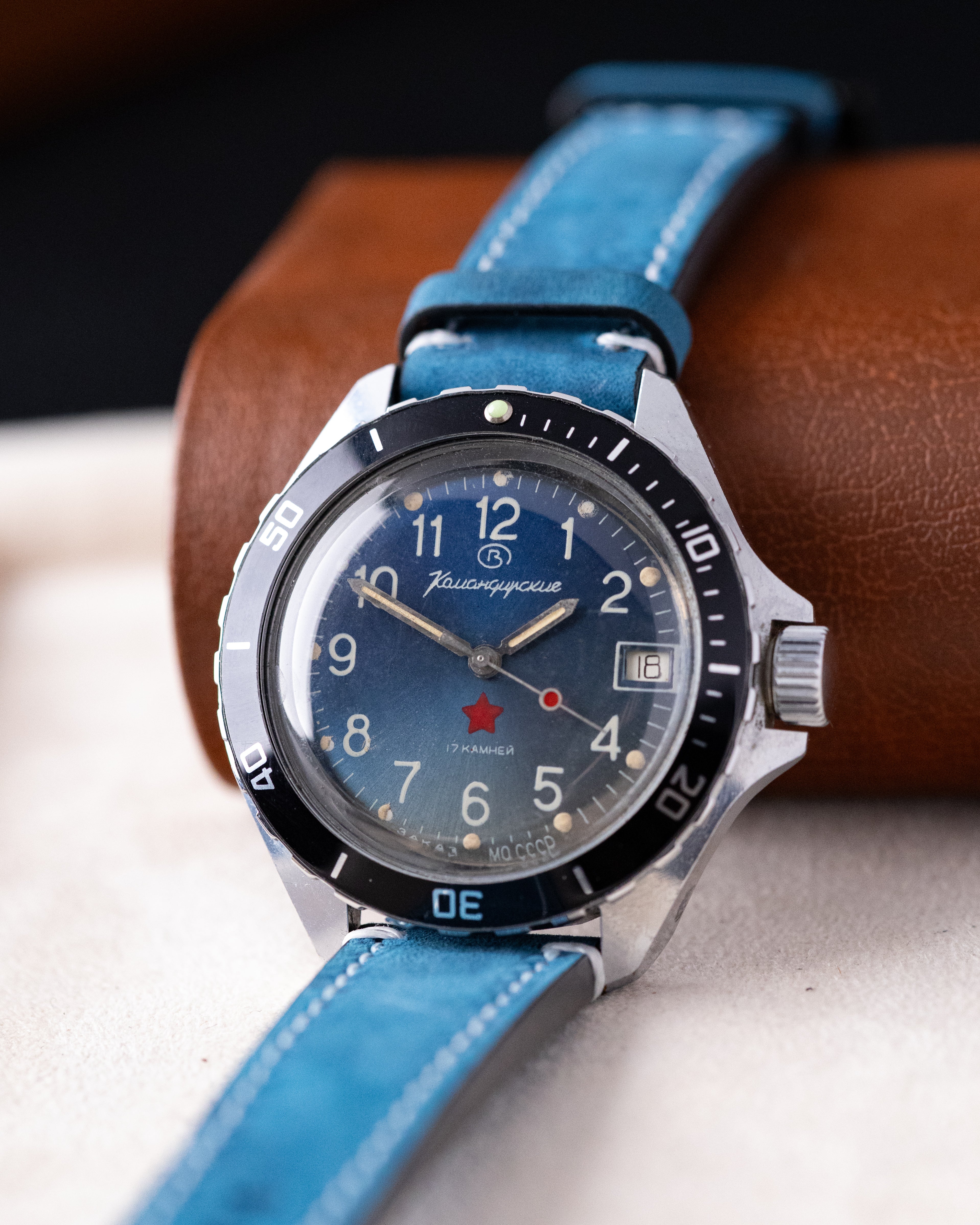 This vintage Vostok Komandirskie from the 1980s captures the bold, functional spirit of late Soviet watch design. Originally developed as a military-style watch, the Komandirskie line became one of the most recognizable names among Soviet vintage watches.
