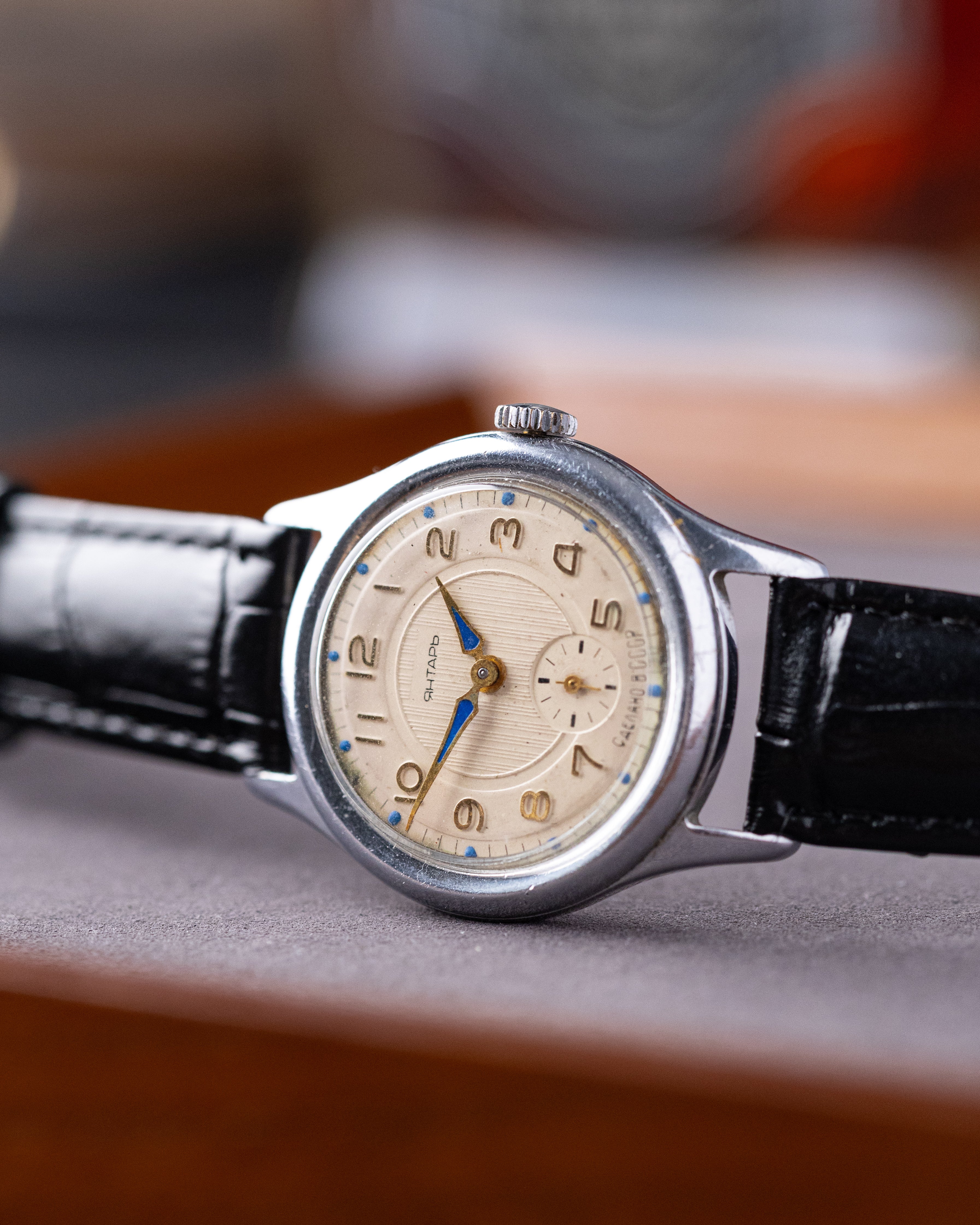 Jantar watches were known for their clean designs and reliable mechanical movements, aimed at everyday Soviet citizens seeking a stylish yet affordable timepiece. This model, with its vintage character and well-preserved dial details, is a perfect example of mid-century Soviet watchmaking craftsmanship.