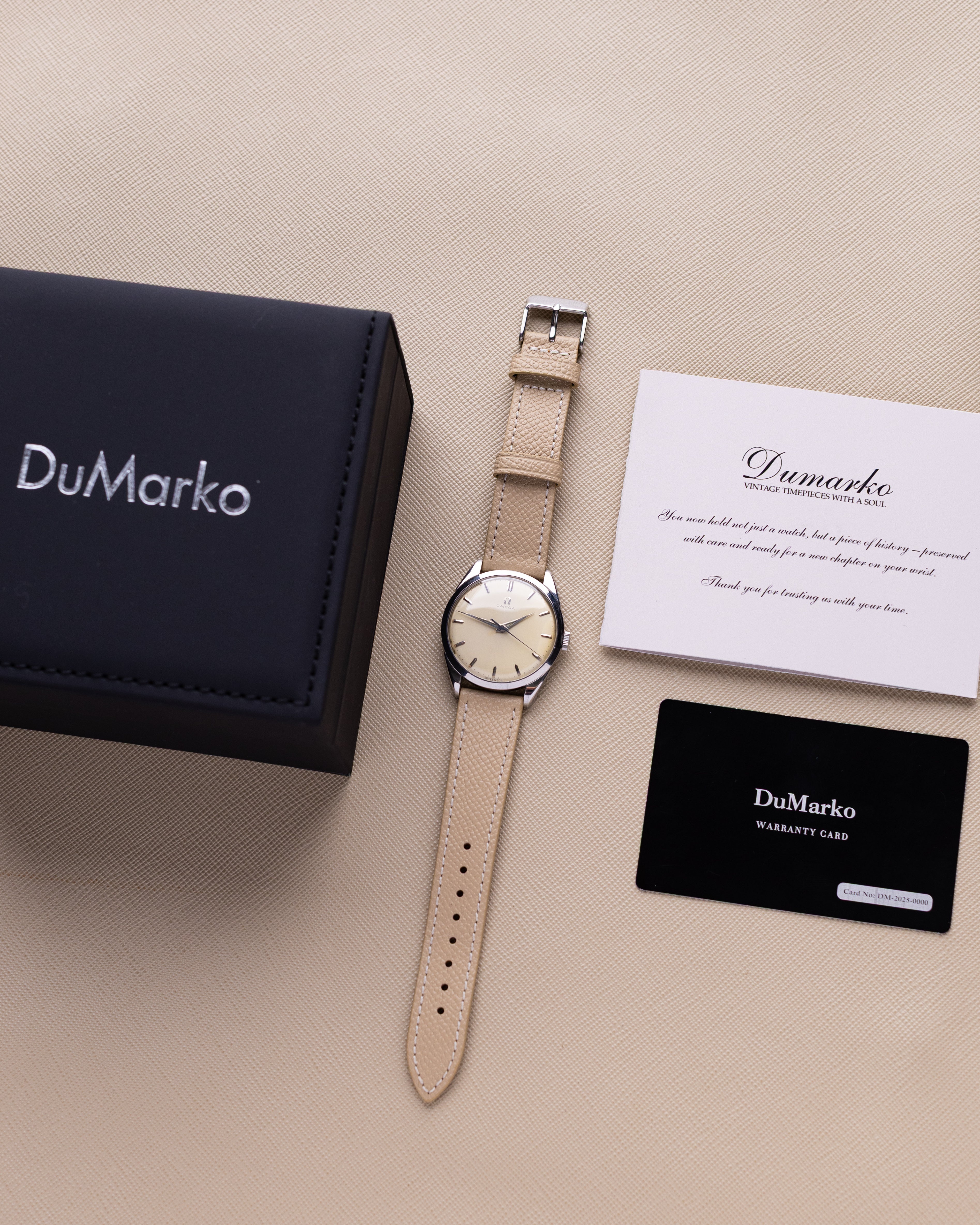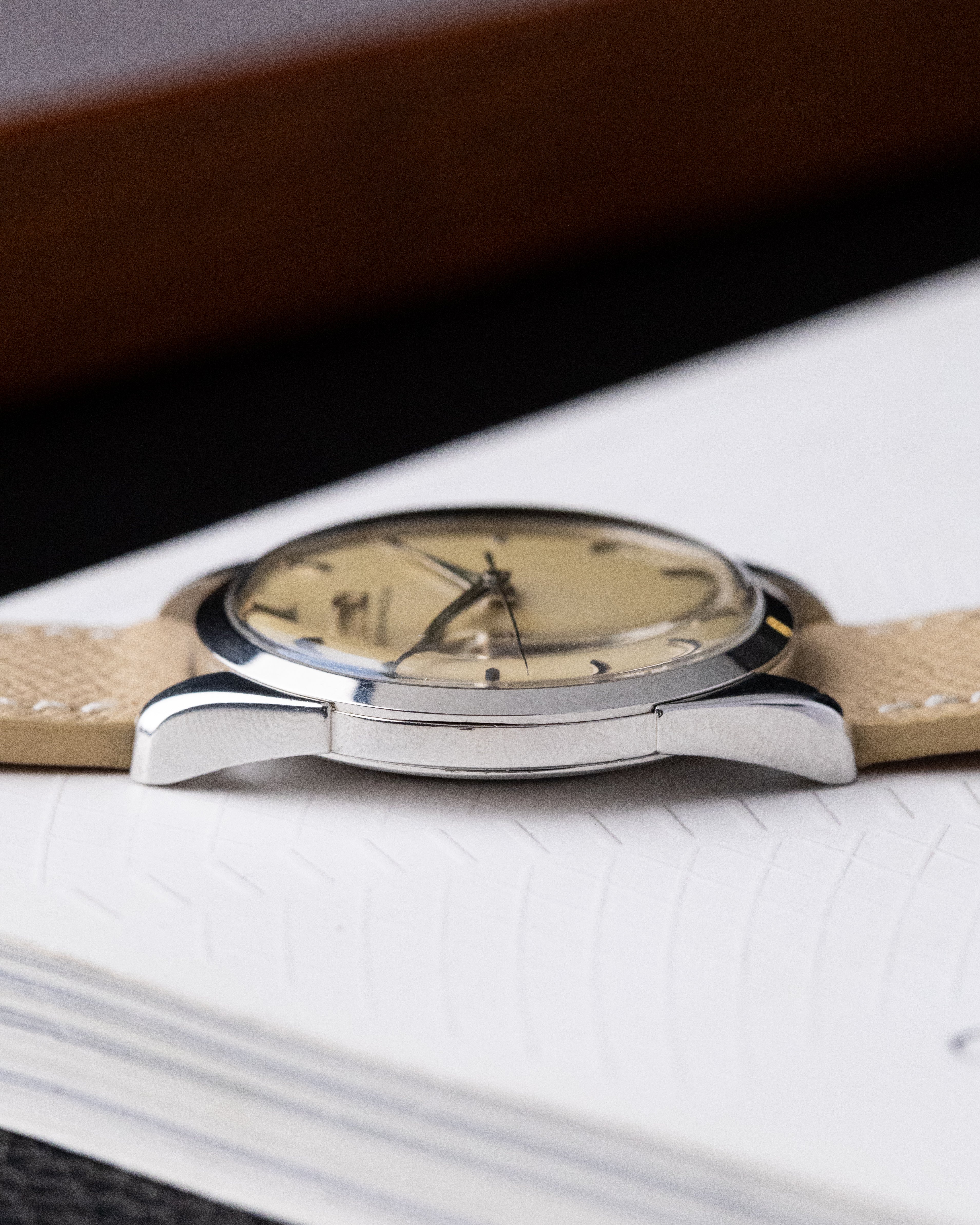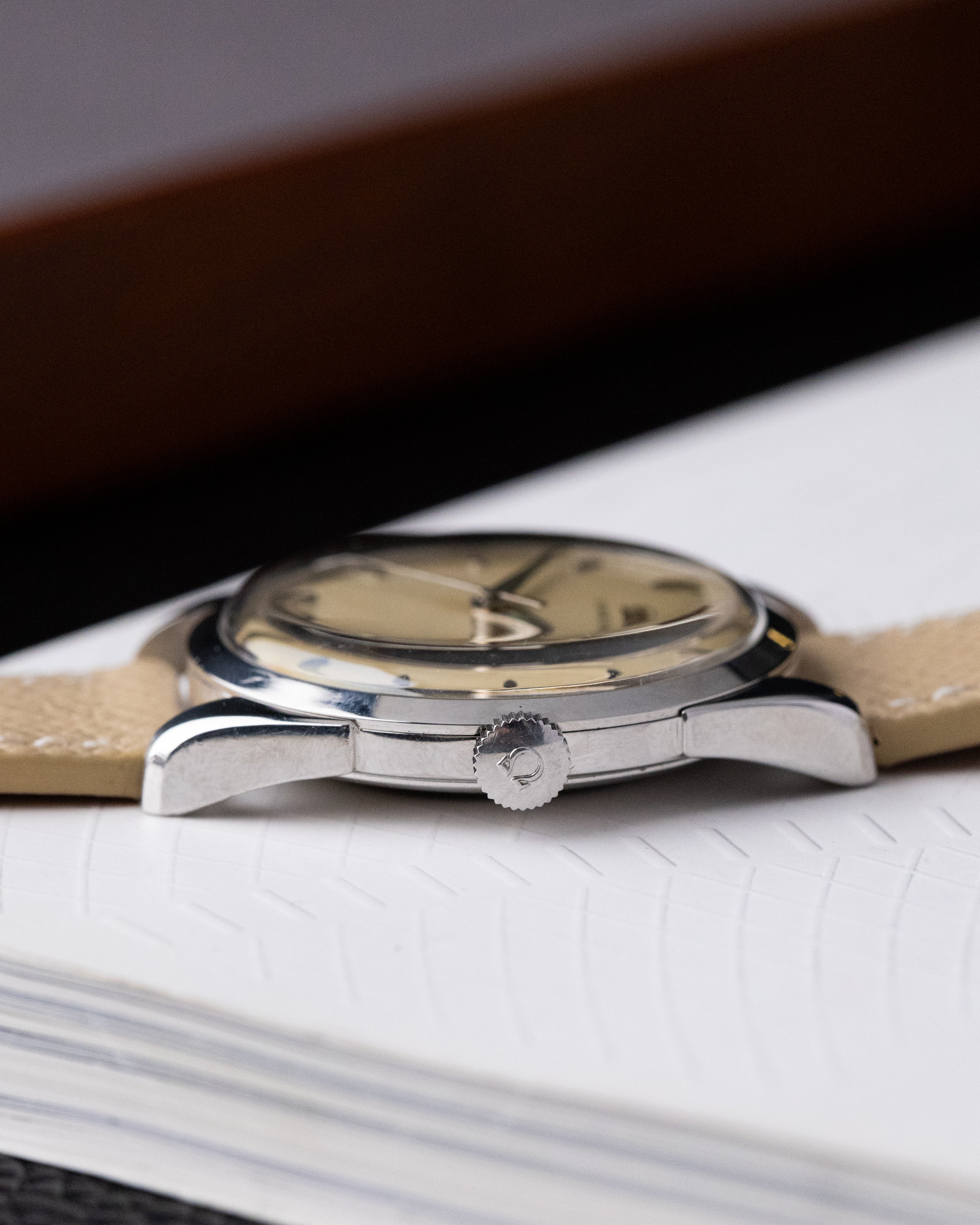 This Omega Ref. 2910-8 SC, dating to 1958, is a clean and understated example of mid-century Omega design. With its classic 34 mm steel case, dagger indices, and creamy dial tone, it captures the essence of late 1950s Omega dress watches—refined, reliable, and incredibly wearable.