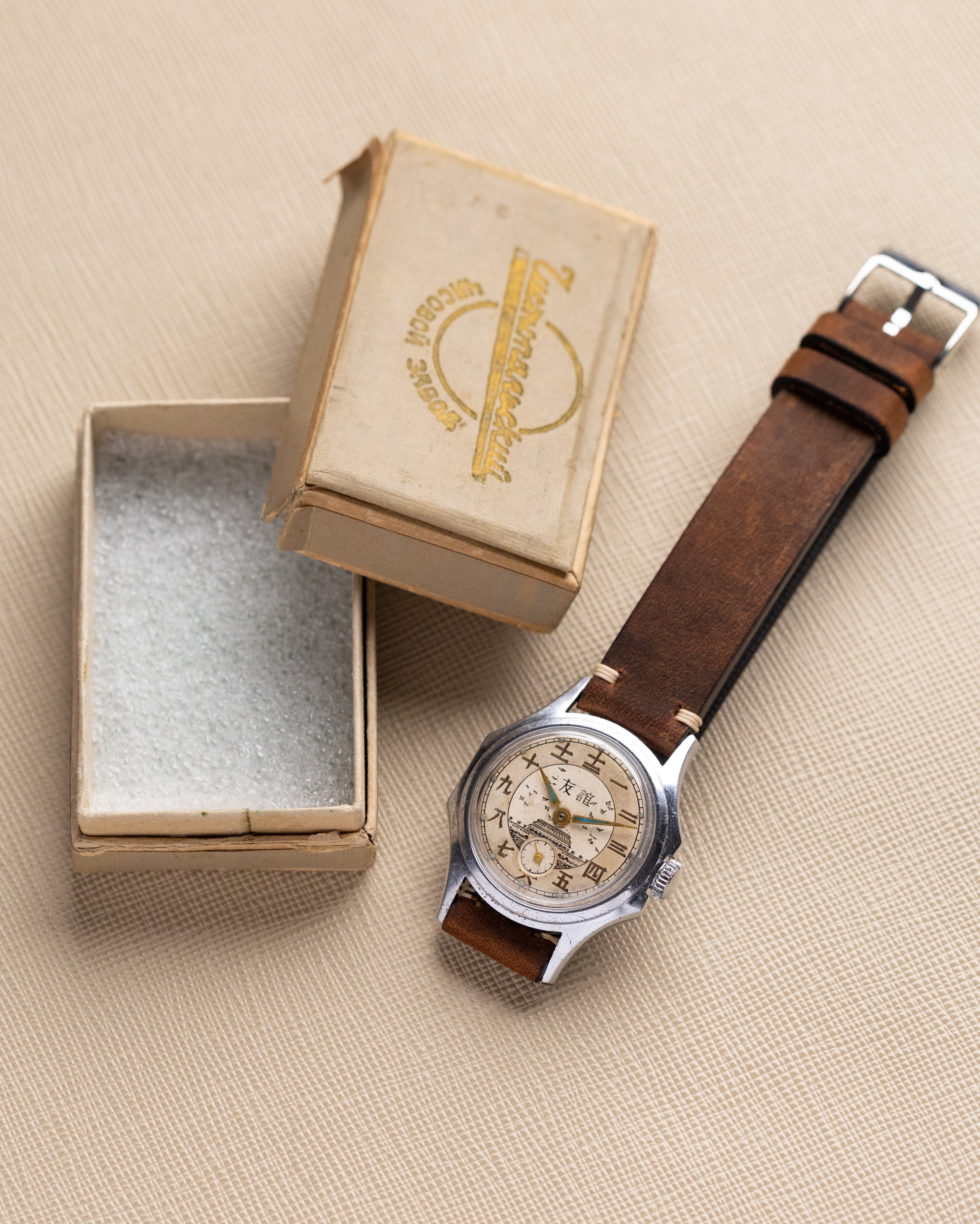 This Vostok “Druzhba” is a historically significant piece, created specially for the 1954 First Exhibition of Economic and Cultural Achievements of the USSR held in Beijing. The name “Druzhba” translates to Friendship, symbolizing the close relations during this pre–Sino-Soviet split era.
