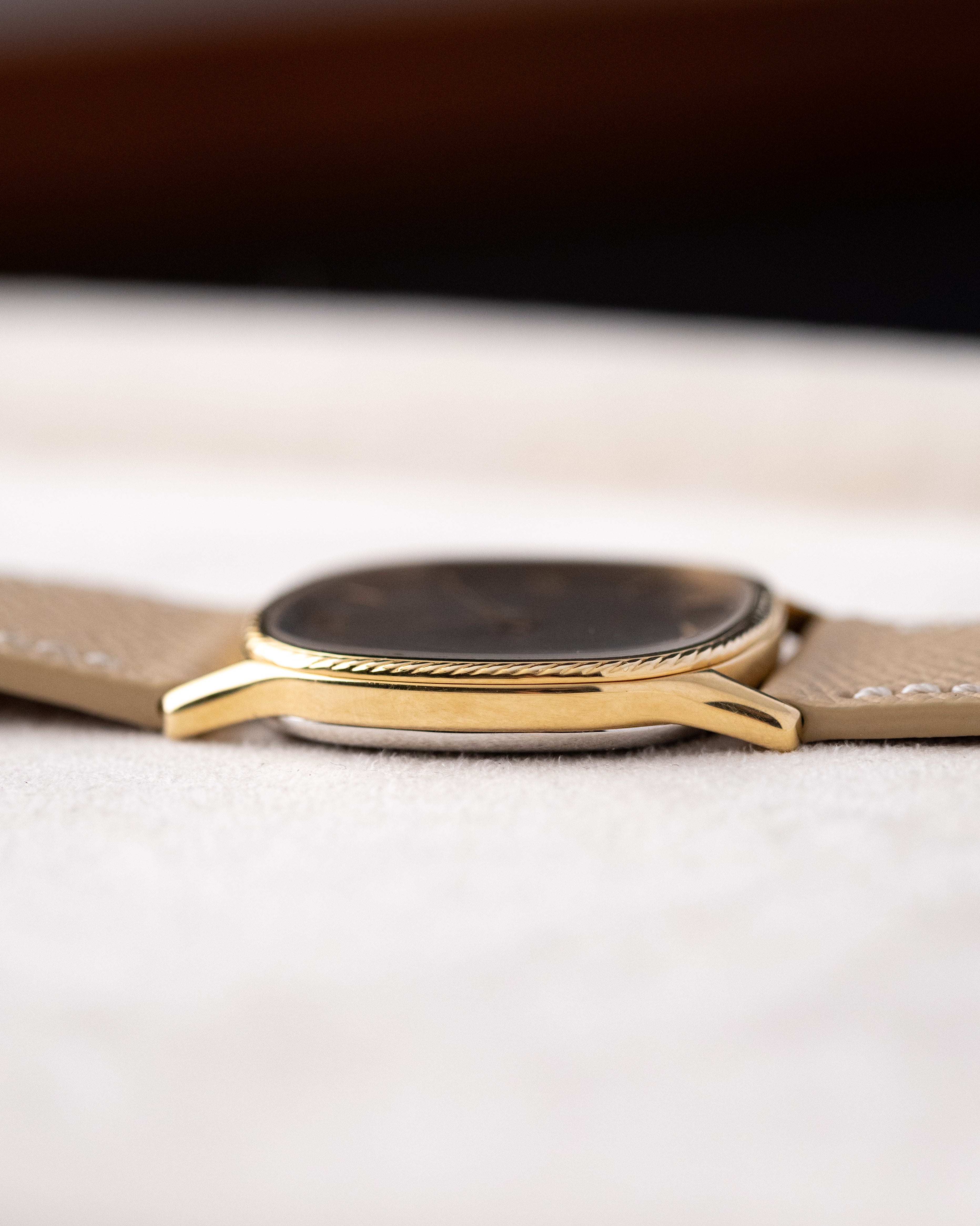 This vintage Omega De Ville from the 1980s stands out for its unusual dial color and refined case details. The soft mocha-toned dial has a warm, muted look that closely matches Mocha Mousse, Pantone’s Color of the Year for 2025. It gives the watch a modern feel while staying true to its vintage roots. Gold markers and gilt Breguet numerals add contrast and character - a look more commonly seen on black dials rather than lighter tones like this one. .