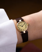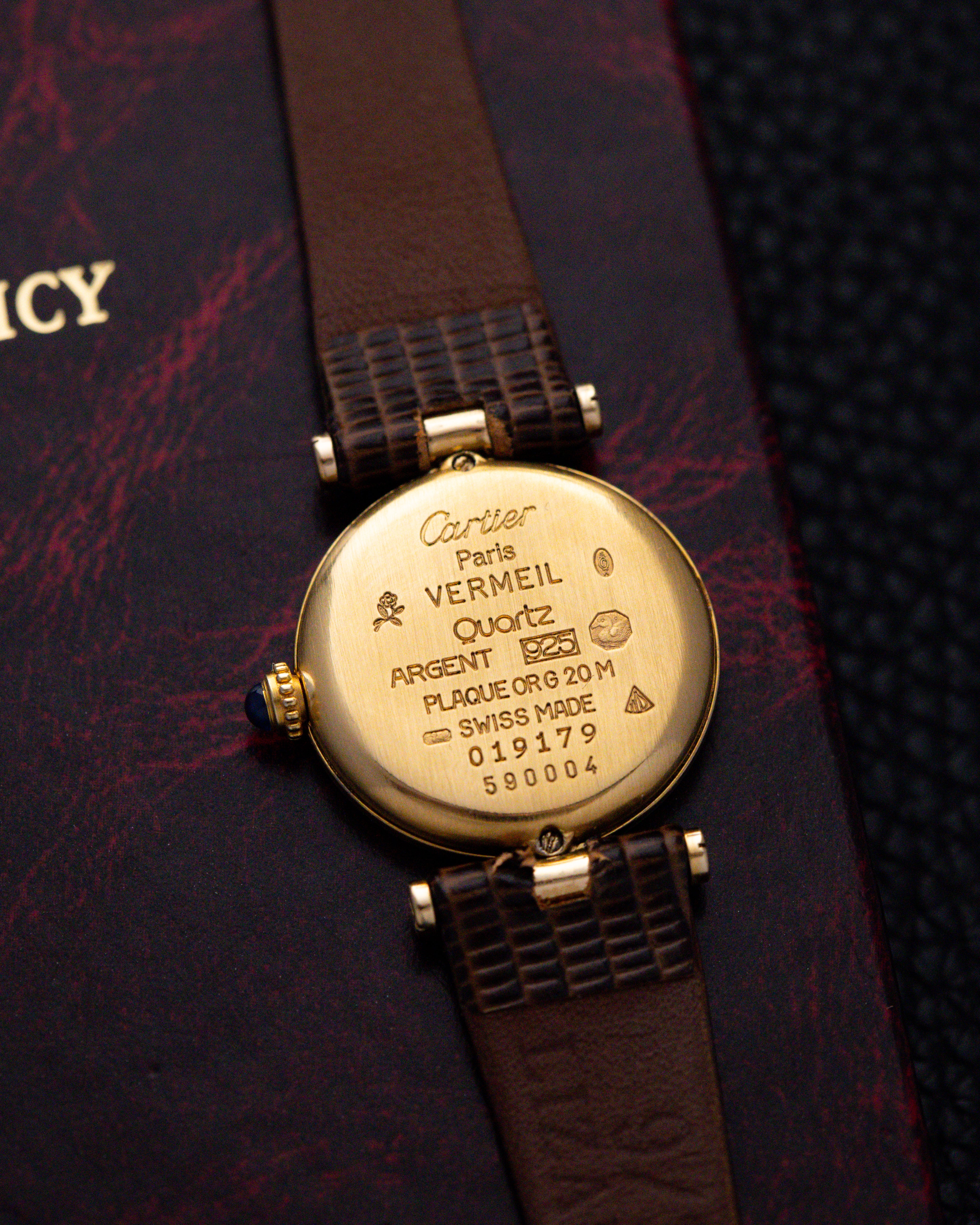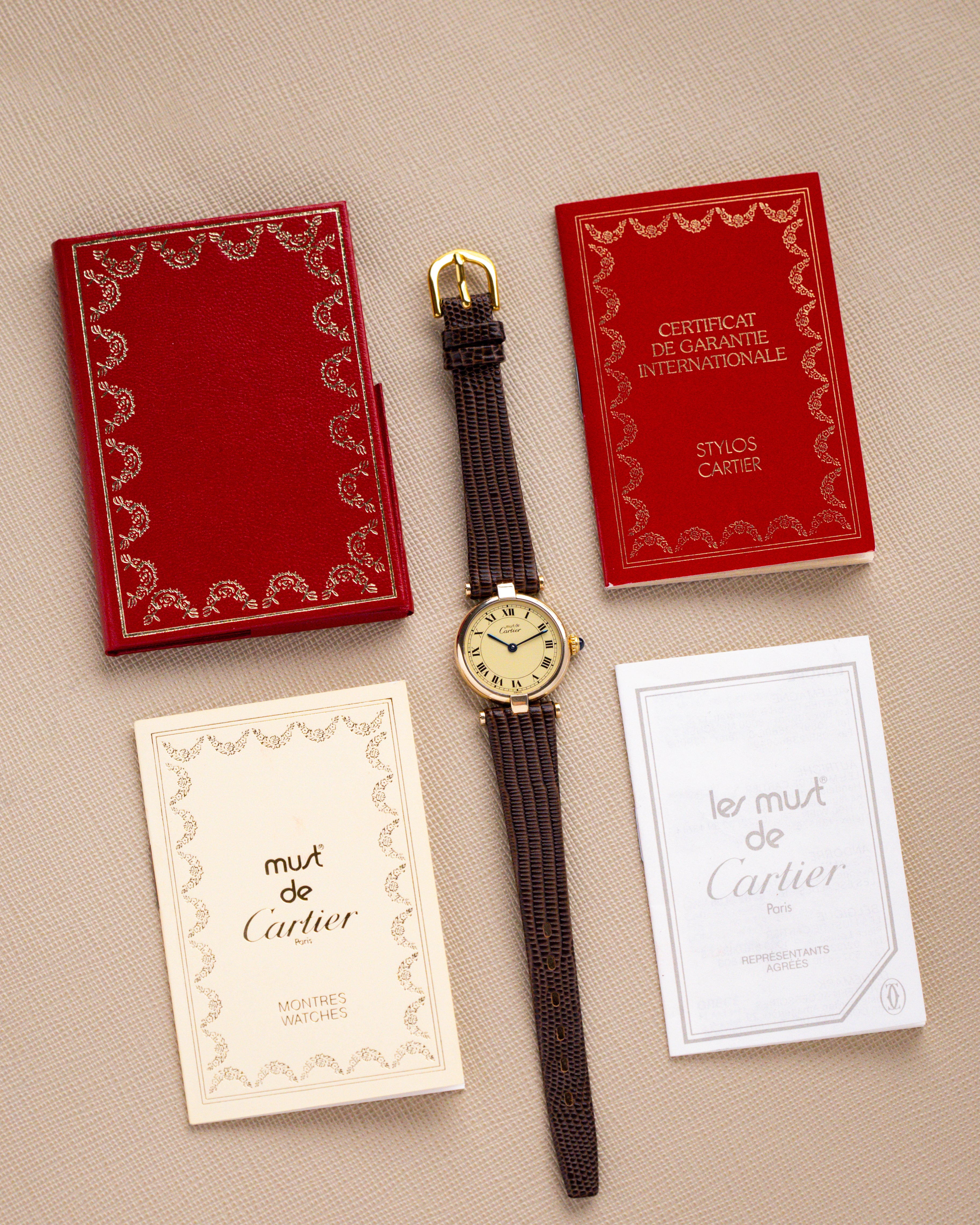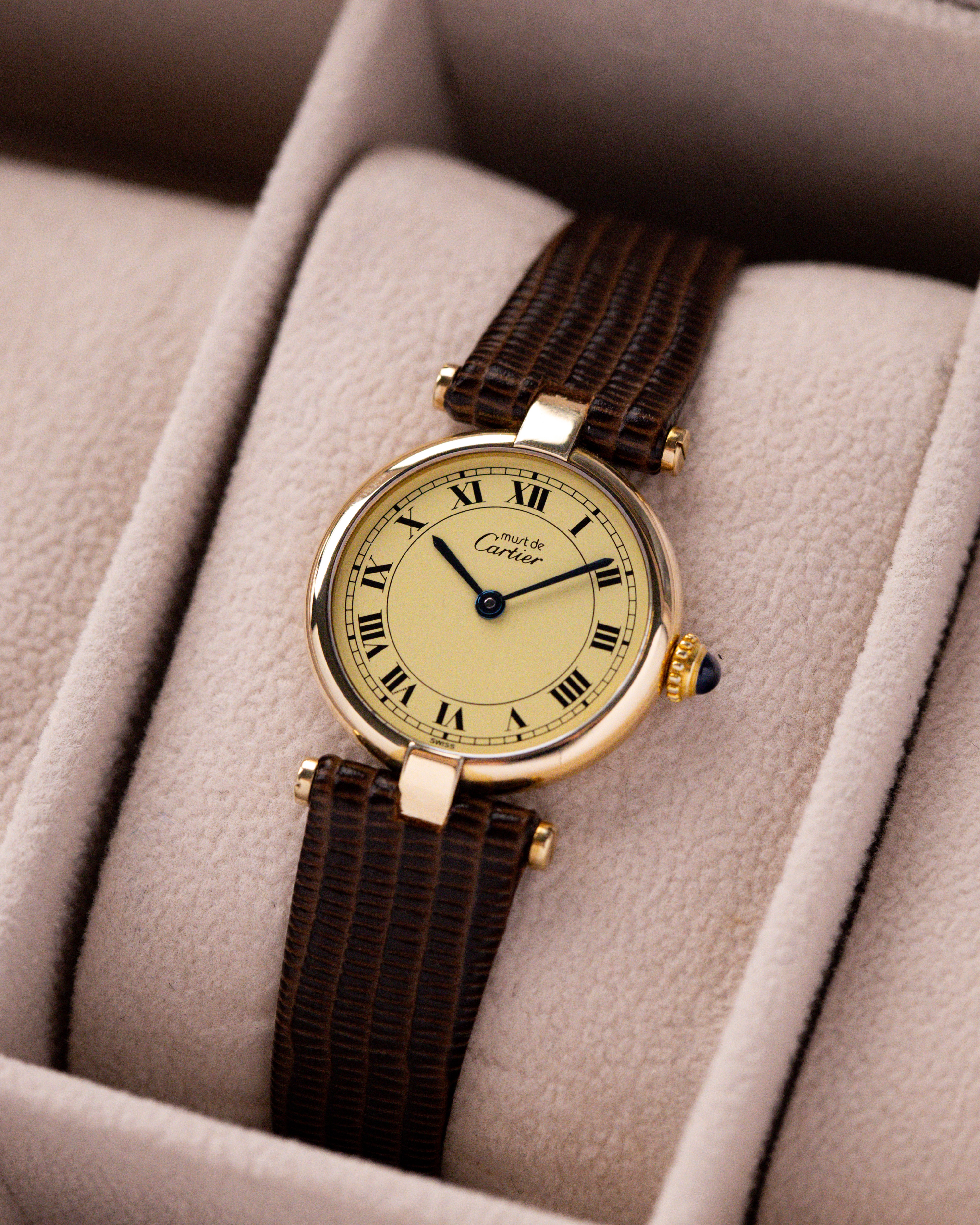 The Must de Cartier Vendôme is one of the most recognizable dress watches ever made, and this example - represents the line in its most classic and timeless form. Clean, confident, and unmistakably Cartier, it is the kind of watch that has been on the wrist of collectors and admirers for decades and will continue to be for decades more. From the vermeil case to the blue cabochon crown, every detail here is exactly as it should be.