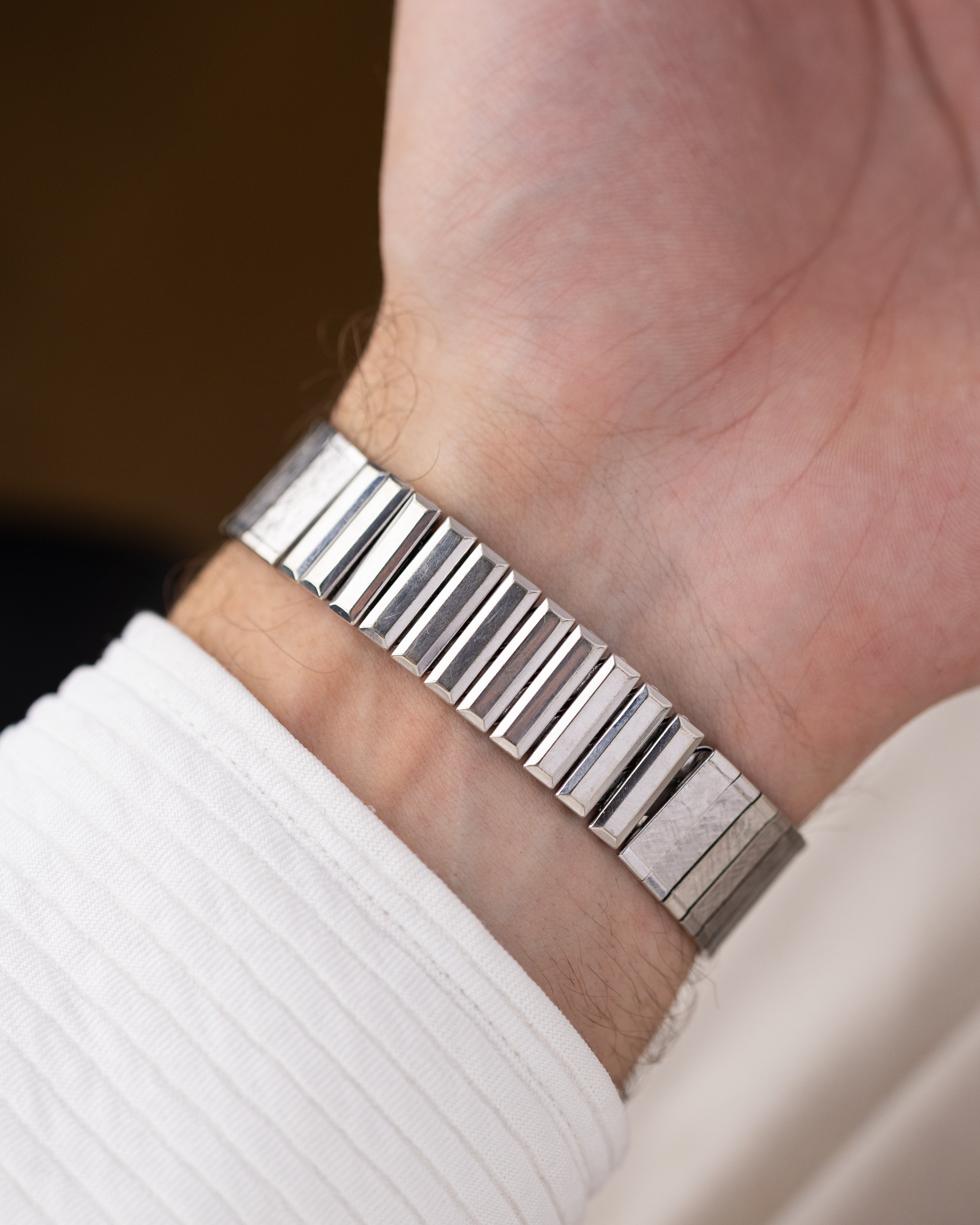 The 34mm 10K white gold-filled case gives the watch a slim, refined profile. The long, elegant lugs add stretch and presence without overwhelming the design. The silver-tone dial features beautifully formed star and dagger markers, arranged in a balanced layout that highlights the floating hour indicator at the center. Inside, the watch is powered by the Longines Caliber 23Z, a compact and well-regarded manual-wind movement used throughout the 1950s and 60s in the brand’s dress models.
