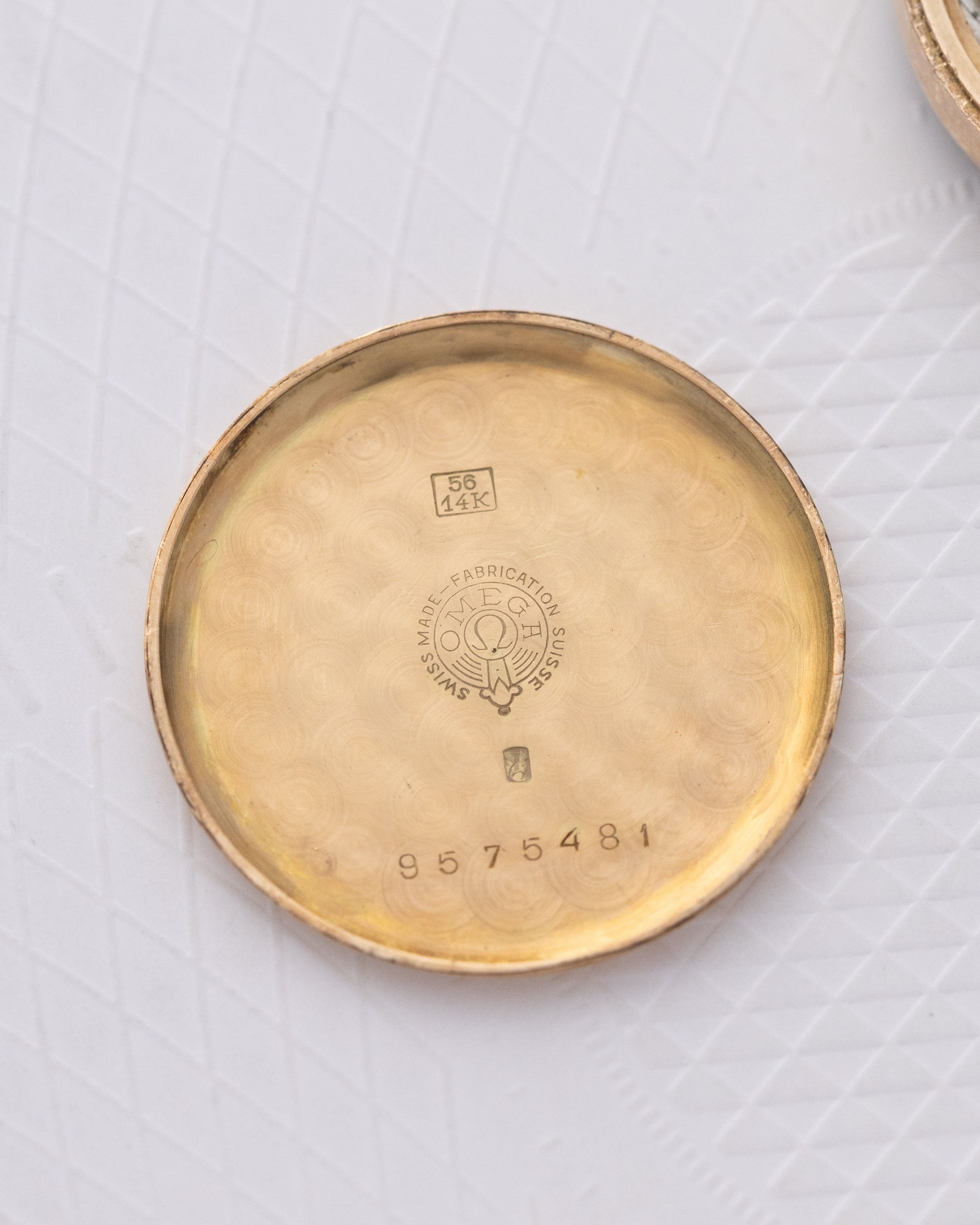 Powering the watch is the Omega Caliber 30T2, a manual-wind movement known for its sturdy construction and wide use during the 1940s. The serial number 9575481 dates this watch to 1943.