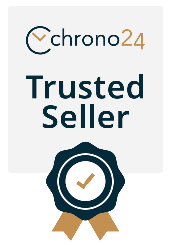 Depuis 2024, nous avons l'honneur d'être certifiés « Vendeur de confiance » sur Chrono24, la principale place de marché mondiale de montres de luxe. Cette prestigieuse distinction témoigne de notre réputation de revendeur horloger international fiable.