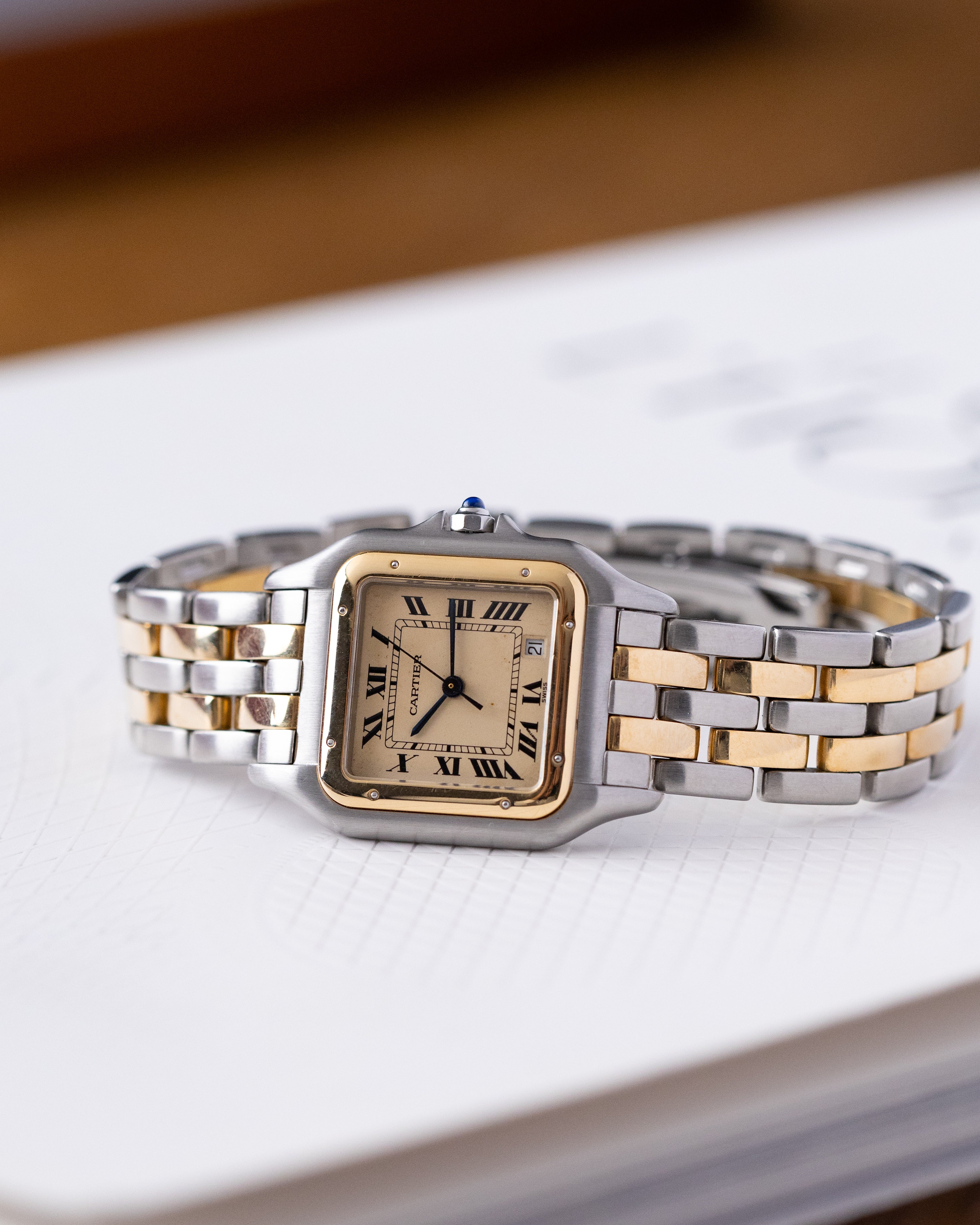 Montre Cartier Panthère Medium bicolore vintage, guichet date, fabrication suisse, unisexe, années 1980