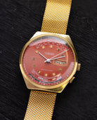 This striking Raketa Perpetual Calendar watch from the 1970s is a bold and innovative timepiece that captures the essence of Soviet-era design. Featuring a 40 mm gold-tone case, this watch has a commanding wrist presence while maintaining a unique retro aesthetic.